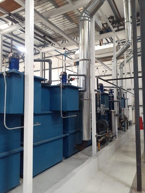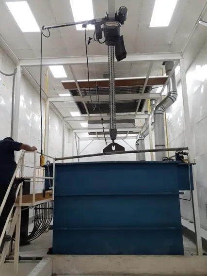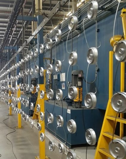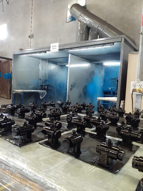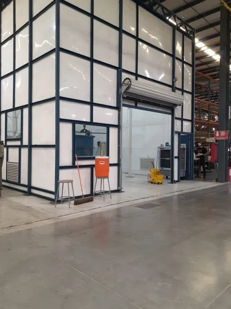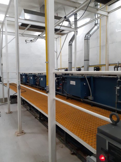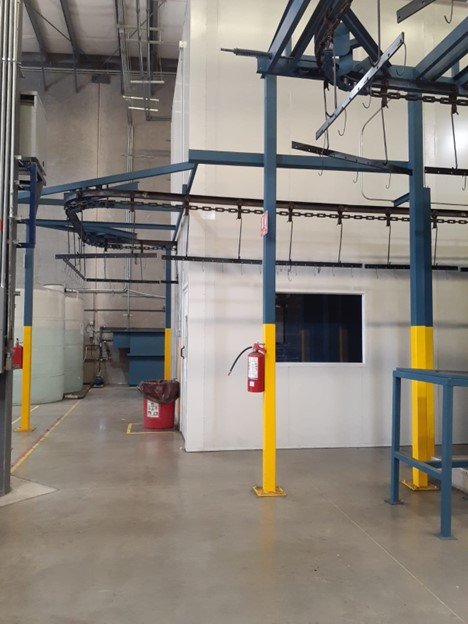 The paint stripping line is in an isolated room with a stainless steel extraction system. This area is coated with epoxy to protect the integrity of the building and for environmental protection.